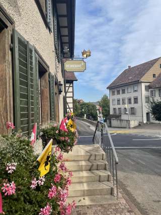 In unserer Vinothek warten 55 Weine von 25 Weingütern aus dem Schaffhauser Blauburgunderland – zum Degustieren und direkt Kaufen. In der erhaltenen Gaststube geniesst du Weine, kleine Imbisse und hausgekochte Menüs wie den beliebten Hackbraten sowie frische Desserts. Ob zu zweit oder in der Gruppe: Es wird herzlich und entspannt. Gruppen ab 12 Personen empfangen wir auch ausserhalb der regulären Zeiten.